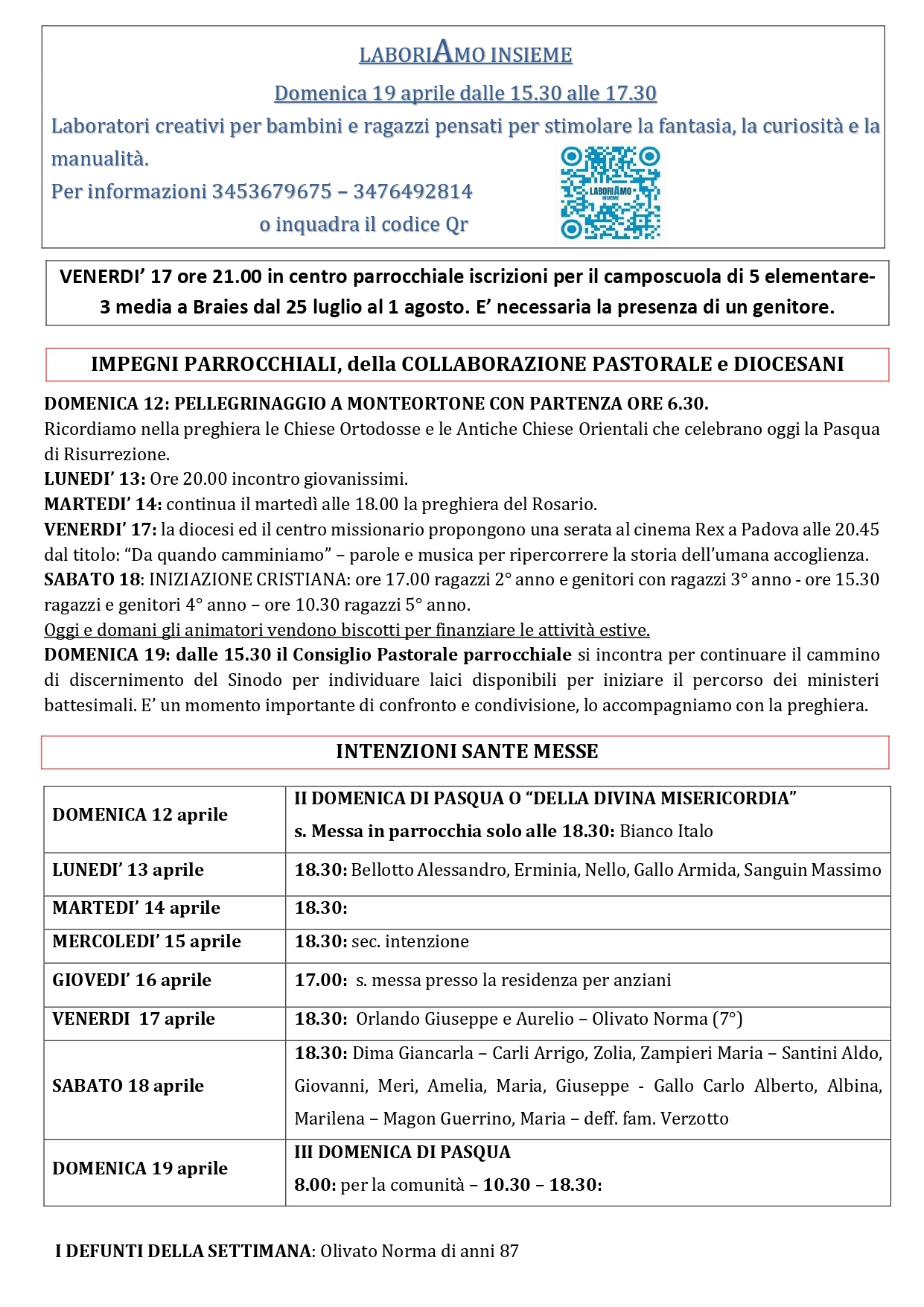 DOMENICA 12 APRILE 2026